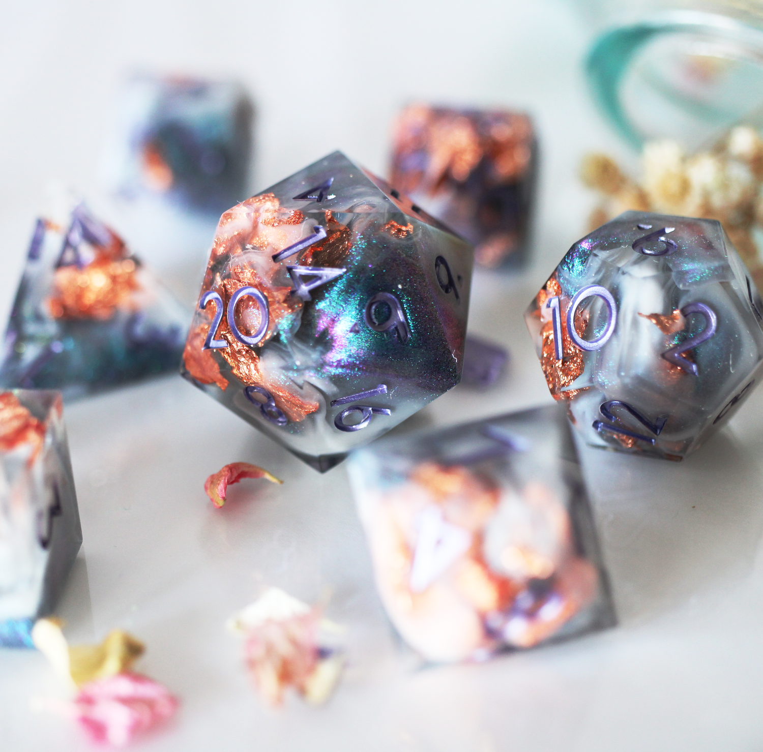 Hefty Dice are crafted using Epoxy Resin for maximum durability and glassy clarity.